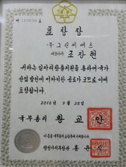국무총리 표창 노사협력 증진 공로