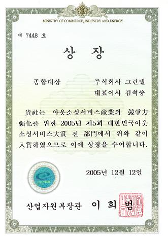 | 2006 한국 아웃소싱 서비스 종합대상 그린텔... | |||